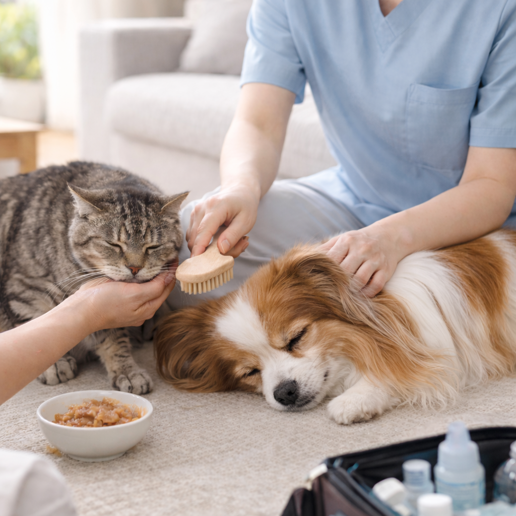 介護が必要な子や闘病中の愛犬・愛猫の食事管理・日常ケアをサポートします。体調の変化に合わせて対応します。